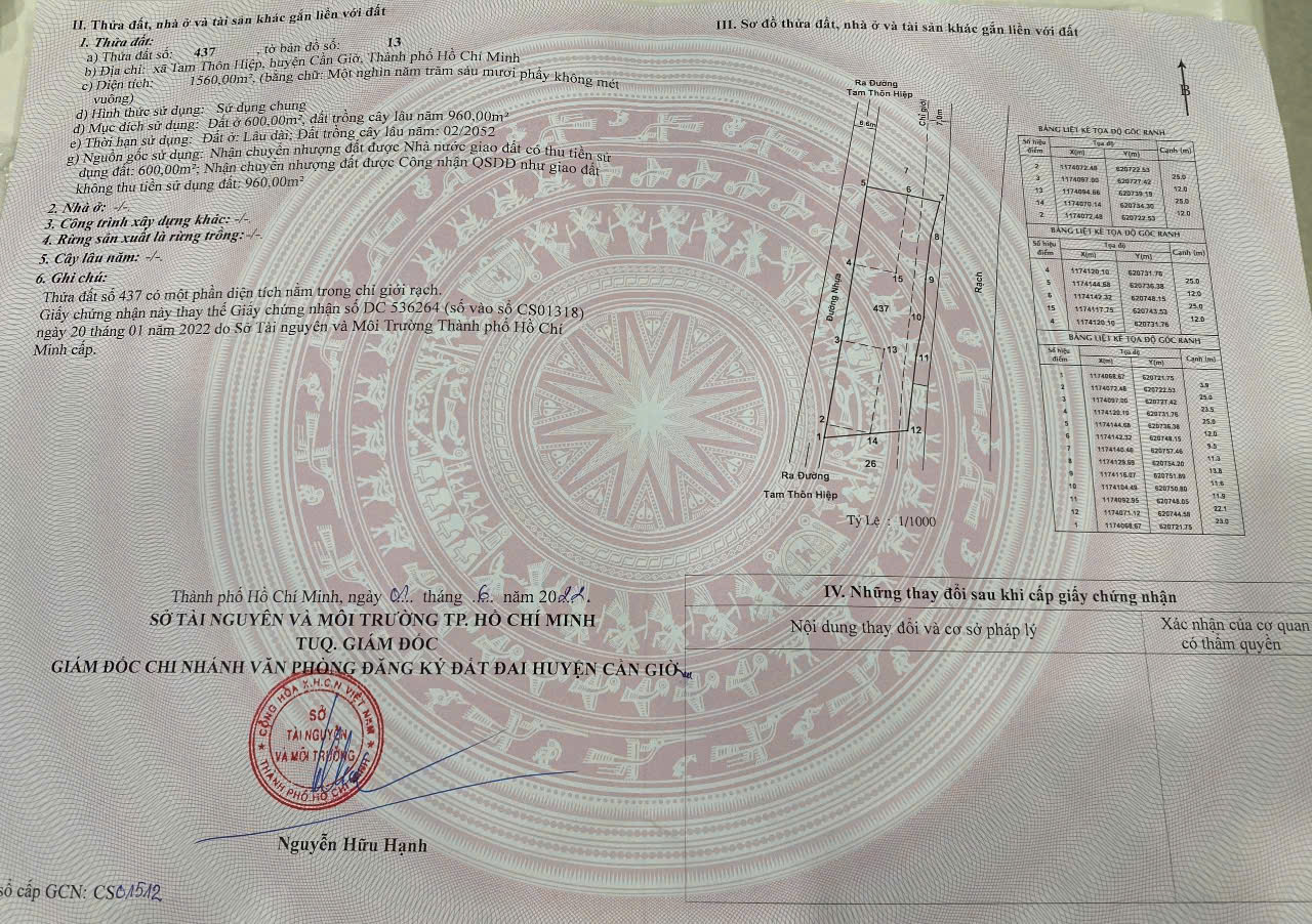 ✔ Diện tích: 1.560m² (600m² thổ cư, 960m² cây lâu năm)
