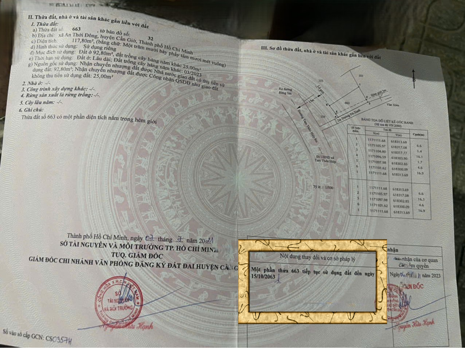Diện tích: 117,8m² (90m² thổ cư, phần còn lại đất trồng cây lâu năm)